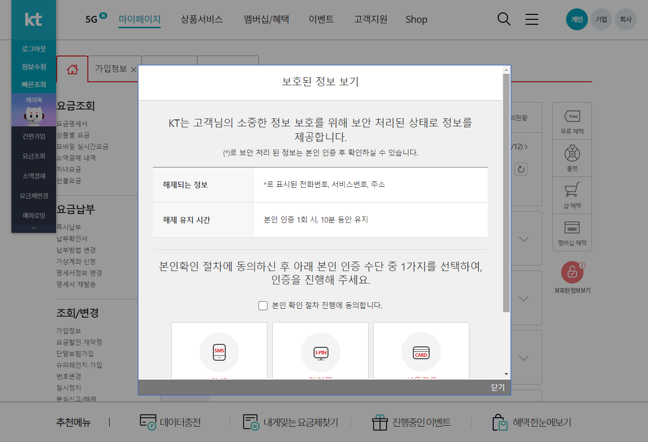 인증을 통해 개인정보를 볼 수 있나봅니다.
