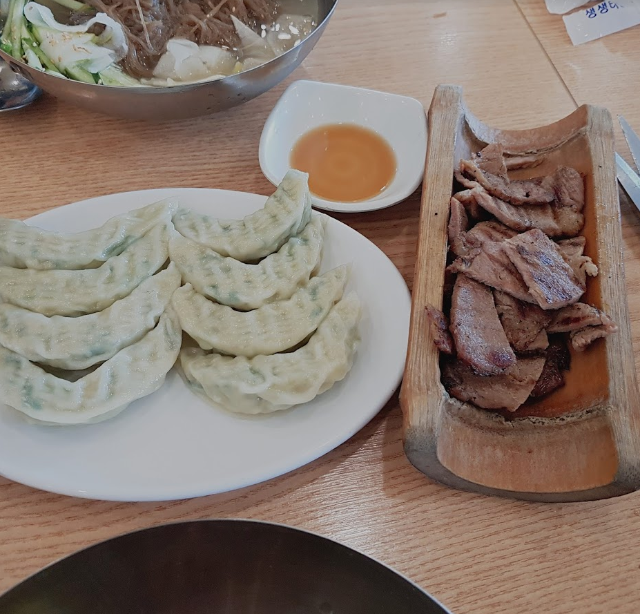 고기만두와 숯불돼지고기 입니다. 위 사진은