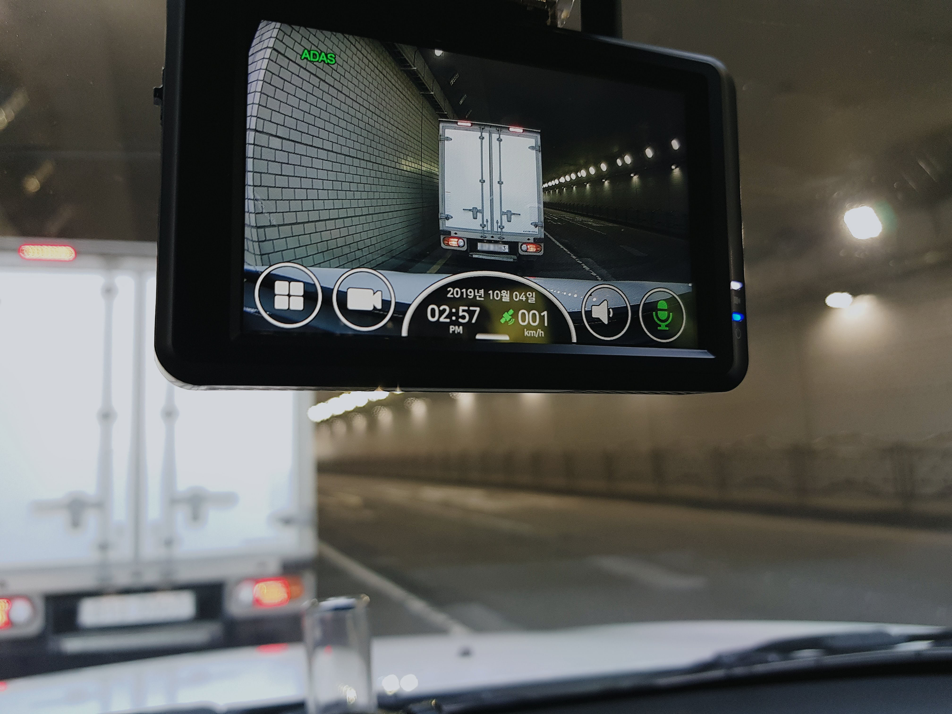장착하고 돌아오는 길에 블랙박스를 만져봤습니다. 화면은 큰편, IPS가 적용되어 옆에서도 잘 보이고요, 화면 터치로 후방카메라 화면전환이 이루어 집니다. 화면사이즈가 정말 만족스럽네요.