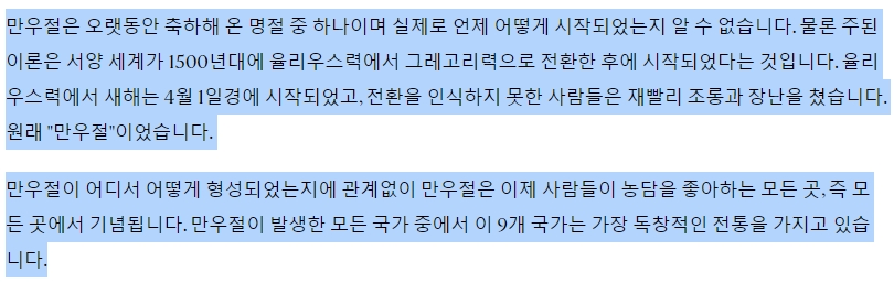 따라서 대한민국 뿐 아니라 다른 국가에서도 만우절이 있습니다.