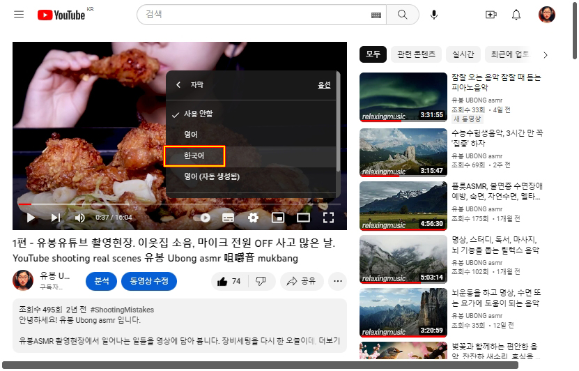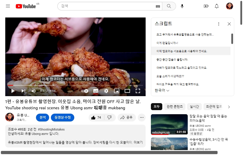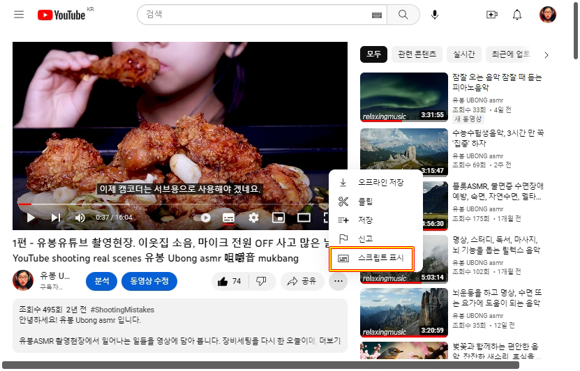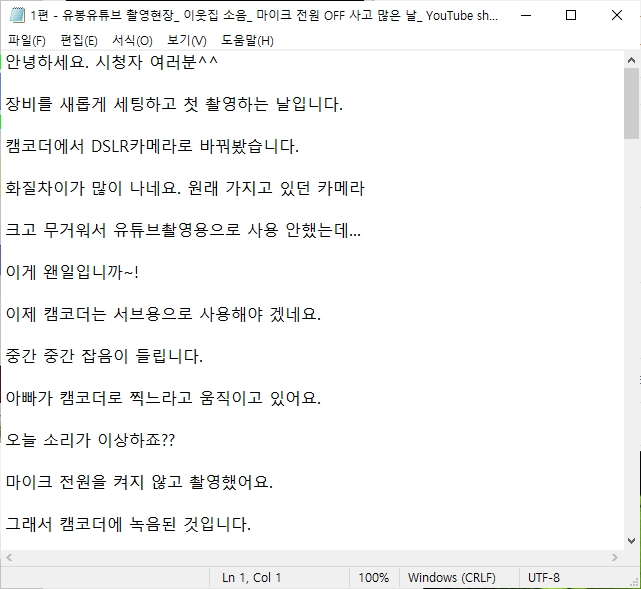 ⑧파일이름은 유튜브영상으로 저장되었네요. 파일을 열어보면 자막이 잘 저장된 것을 확인할 수 있습니다.