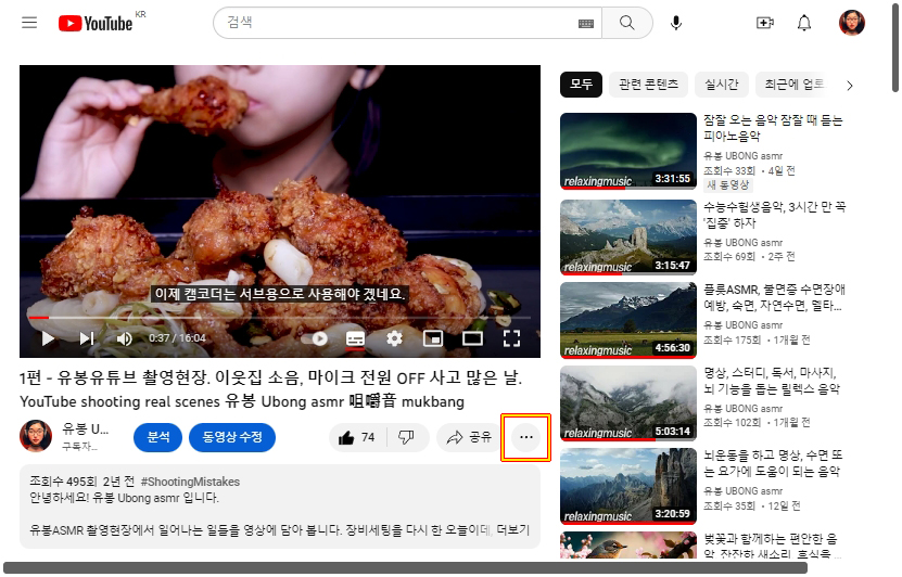 ④자막이 화면에 나타난 것을 확인합니다. 화면 오른쪽 아래로 '···' 선택합니다.(▼아래사진)
