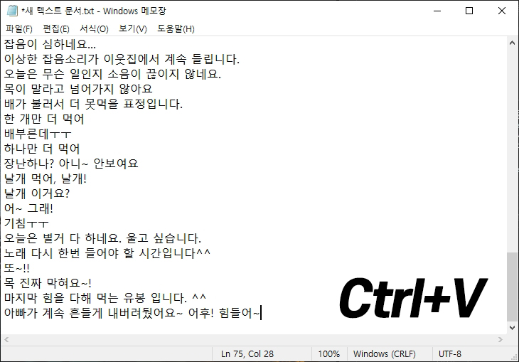 ⑪메모장에 붙혀넣기단축키 'Ctrl+V' 하면 됩니다. 메모장의 자막을 저장하면 끝!