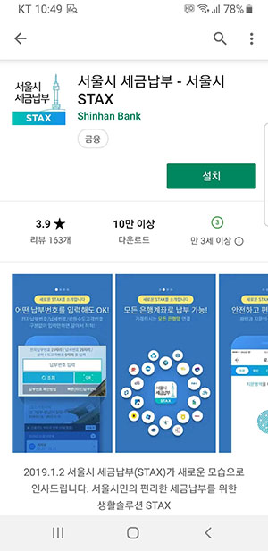 Play스토어(구글앱)에서 '서울시 세금납부'