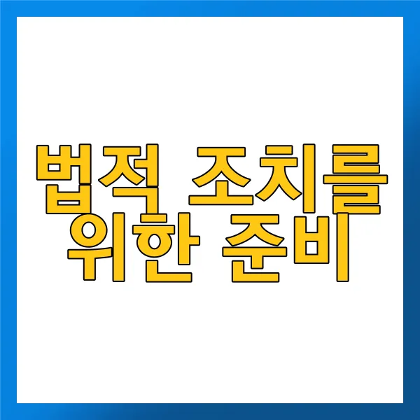 법적 조치 준비의 마지막 단계는 법률 전문가와의 상담입니다. 자신의 권리와 책임에 대해 정확하게 인식하고, 최선의 법적 방안을 계획하기 위해서는 숙련된 법률 전문가의 조언이 필요합니다. 이를 통해 법률적 허점을 미리 방지하고, 법원에서의 전략을 구상할 수 있습니다. 변호사를 선임함으로써 법적 자문을 받을 수 있으며, 이는 문제 해결에 있어 매우 유리하게 작용합니다.