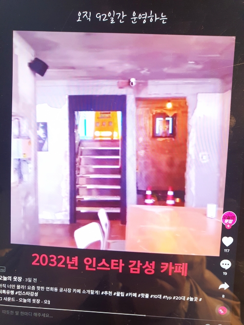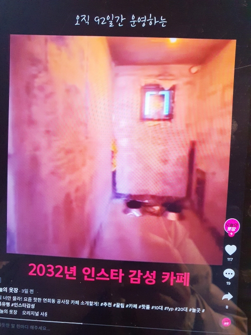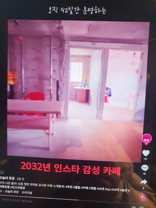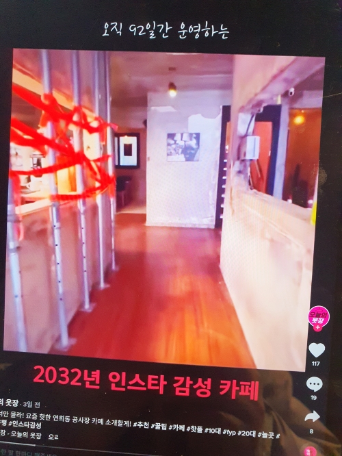 영상을 찾아보니 독특한 인테리어와 건설현장에서 볼 수 있는 것들을 이용한 카페 분위기가 말 그대로 '골때리네~'였습니다. 자세히 보면 예전 한국에 입점한 블로보틀 카페인테리어 느낌이 살짝 나는 느낌이 있는거 같았습니다.
