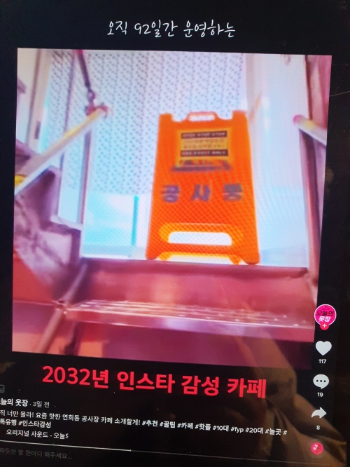 요즘 MZ세대 폰에서는 공사장카페 이야기가 화재가 되고 있습니다. 정말 말 그대로 공사장카페 입니다. MZ세대는 1997년에서2012년 사이에 태어난 사람들이 포함되며 기술의 광범위한 사용, 디지털 지식 및 글로벌 상호 연결성이 특징입니다. 그들은 삶의 필수적인 부분으로 기술과 함께 성장한 최초의 진정한 디지털 원주민으로 간주됩니다. 그들은 종종 자신감 있고 관용적이며 열린 마음으로 묘사되며 개성과 다양성을 강조합니다.