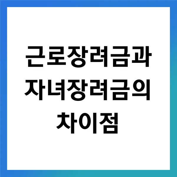 두 제도의 가장 큰 차이점은 바로 지원 목적과 대상 입니다. 근로장려금은 저소득 근로자를 지원하여 노동 시장에 대한 참여를 장려하는 반면, 자녀장려금은 자녀를 양육하는 가구의 경제적 부담을 덜어주는 데 중점을 두고 있습니다. 이러한 목적의 차이는 지원 금액과 지급 기준에서도 명확히 드러납니다. 근로장려금은 근로소득을 기준으로 하여 가구의 소득 구조를 고려하는 반면, 자녀장려금은 자녀 수와 가구 소득을 기준으로 하여 직접적인 가족 구성원 수에 기반한 지원이 이뤄집니다.