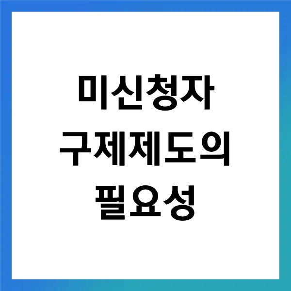 근로장려금 은 저소득 근로자에게 경제적인 지원을 제공하기 위한 중요한 정책 입니다. 하지만 매년 많은 잠재 수혜자들이 이 제도를 신청하지 않음으로써 발생하는 경제적 손실은 상당합니다. 한국에서 2021년에만 약 30만 가구가 근로장려금을 신청하지 않은 것으로 나타났습니다. 이는 연간 약 2조원의 지원금이 소외되는 셈입니다 . 그러므로 미신청자 구제제도는 절실하다 하겠습니다.