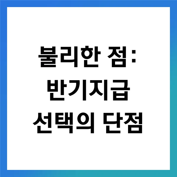 그뿐만 아니라, 반기지급 선택은 세무적인 면에서도 이점을 제공합니다. 소득이 증가하더라도 일정 기준에 따라 지급받을 수 있는 가능성이 높아지며, 예기치 못한 세금 부과의 위험을 줄일 수 있습니다. 반기지급 방식을 선택함으로써, 연말정산 시 발생할 수 있는 높은 세금 부담을 사전에 조절할 수 있는 기회를 얻는 것입니다.