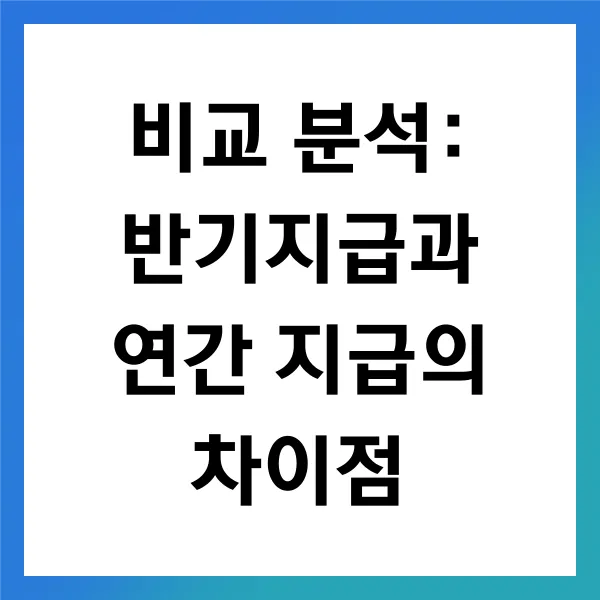 이 두 지급 방식 간의 차이를 분석할 때, 단순히 지급 주기뿐 아니라 가계 재정에 미치는 영향도 고려해야 합니다. 반기지급을 선택하는 경우, 소득의 변동성을 고려할 수 있어 더 안정적인 재정 운영이 가능할 수 있습니다. 하지만 예상치 못한 지출이 발생할 경우, 반기마다 지급되는 금액이 소진될 위험이 있으므로, 예산관리의 중요성이 강조됩니다. 반면, 연간 지급 방식은 한 번에 큰 금액을 확보하지만, 그에 대한 계획이 부족할 경우 소비가 과도해지는 등의 단점이 발생할 수 있습니다.