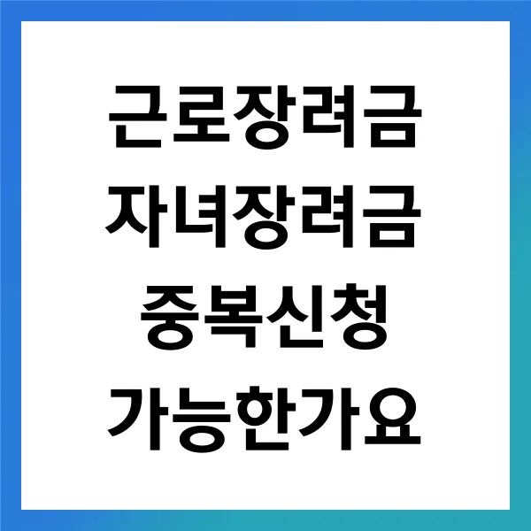 중복신청이 가능하다는 것은 , 각각의 프로그램이 독립적으로 운영되기 때문에, 조건을 충족하는 경우에 한해 두 가지 혜택을 동시에 받을 수 있음을 의미합니다 . 예를 들어, 근로소득이 있는 가구주가 자녀를 두 명 이상 양육하고 있다면, 근로장려금과 자녀장려금을 모두 신청하여 경제적 지원을 받을 수 있는 것입니다 . 이러한 중복신청의 가능성은 저소득층 가구에 실질적인 도움이 될 수 있으며, 이를 통해 가족들의 생활 수준 향상에 기여할 수 있습니다.