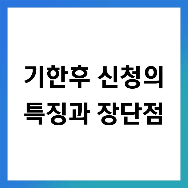 장점으로는, 기한후 신청을 통해 놓친 기회를 보완할 수 있다는 것 이 있습니다. 예를 들어, 정기신청 기간 내에 건강상의 이유로 신청이 불가능했거나, 경제적 여건이 악화된 경우라도 기한후 신청이 허용되기 때문에 일정 정도의 혜택을 받을 수 있습니다. 즉, 시간적 여유가 있는 만큼 신청자의 상황에 따라 유연하게 대처 할 수 있다는 점은 매우 긍정적입니다.