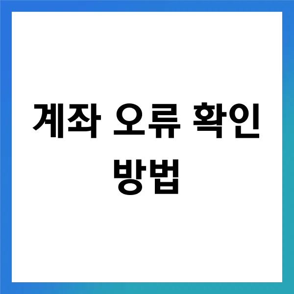 이러한 단계들을 통해 계좌 오류를 확인하고 신속하게 조치할 수 있다면 근로장려금을 차질 없이 받는데 큰 도움이 될 것입니다. 계좌 오류 확인이 완료되었다면, 이후 단계로 넘어가 문제를 해결하시길 바랍니다.