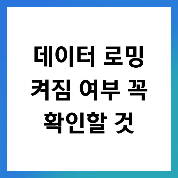 이번 포스팅을 통해 데이터 로밍의 중요성 과 설정 방법, 요금 정책, 데이터 사용량 관리 팁 에 대해 이야기해 보았습니다. 제가 처음 해외여행을 갔을 때 데이터 로밍 설정을 놓쳐서 많은 불편을 겪었던 경험이 있습니다. 그때의 아쉬움이 아직도 기억에 남습니다. 그래서 항상 데이터 로밍 여부를 확인하는 것 이 얼마나 중요한지 더욱 실감하게 되었습니다. 여행을 즐기기 위해서는 미리 준비하는 것이 필수입니다. 여러분도 저처럼 아쉬운 경험을 하지 않으시길 바랍니다. 꼭 확인하시고, 안전하고 즐거운 여행 되시길 바랍니다.