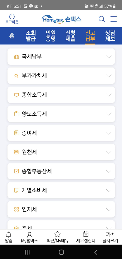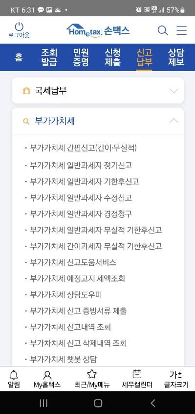 부가가치세 아래로 여러 항목들이 쭉~ 나옵니다.