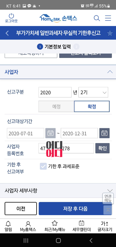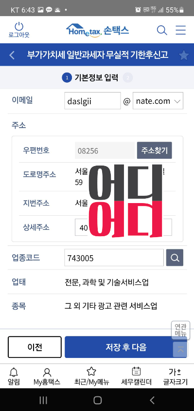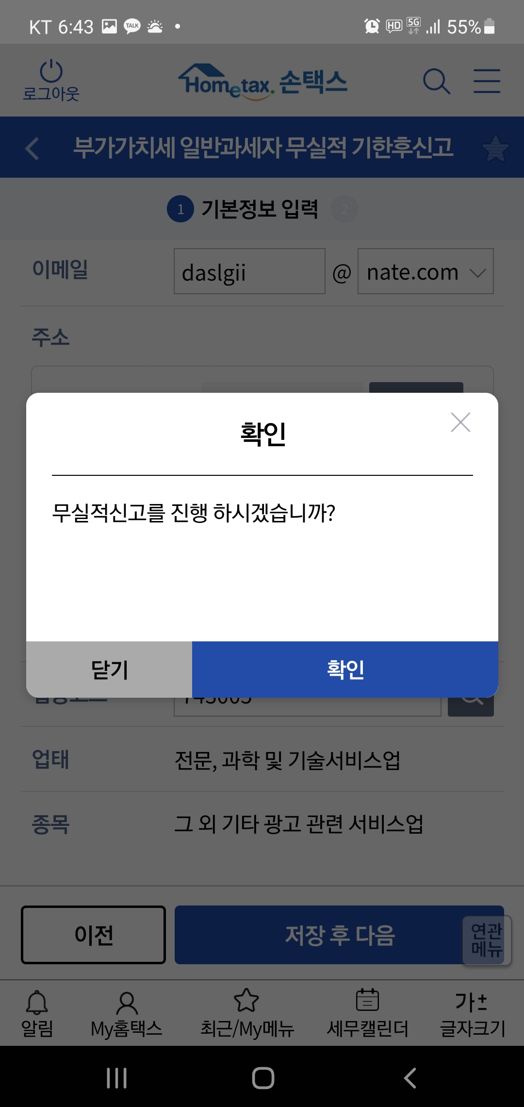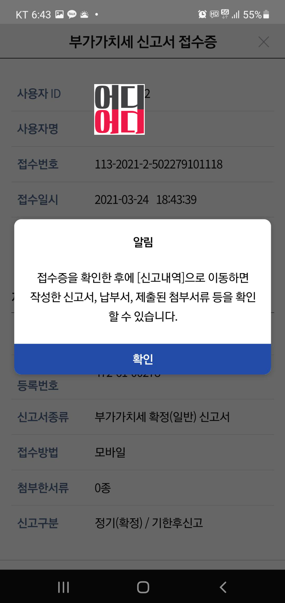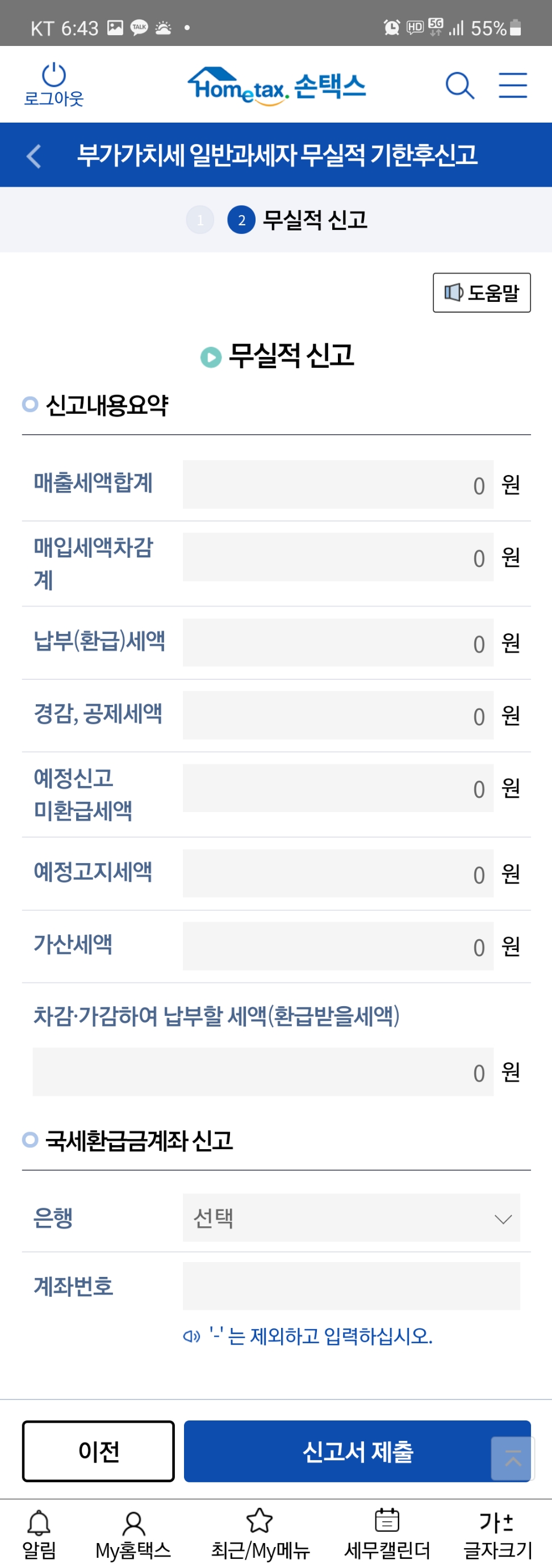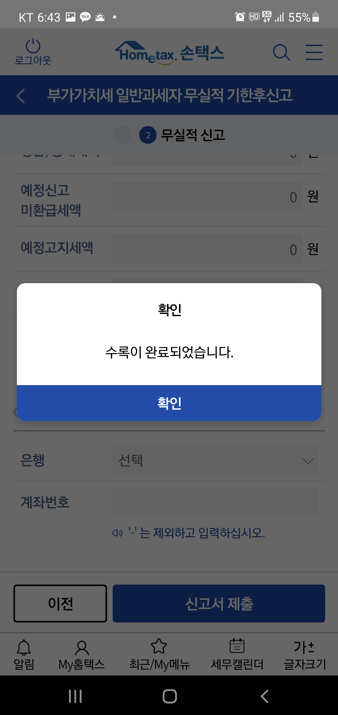 10분만에 무실적 부가가치세 신고를 끝냈습니다.