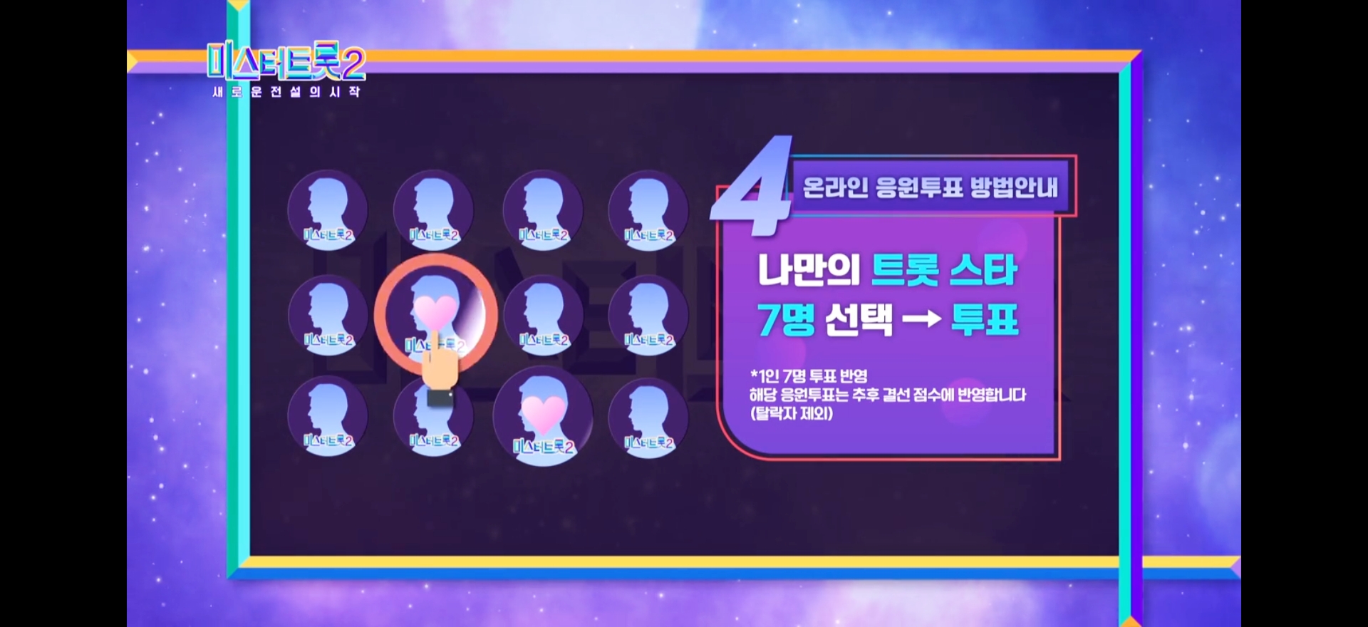이것저것 돌아다니지 마시고, 스마트폰에서 알려준 방법으로 투표하는 게 가장 정확하고 빠릅니다. 감동과 재미~ 노래는 트롯트지 말할 수 밖에 없는, 전국민이 사랑하는 미스터트롯2 투표 잊지 말자고요! 재방송은 넷플릭스에서 보시면 됩니다. 이도 안되면 유튜브 보세요~^^