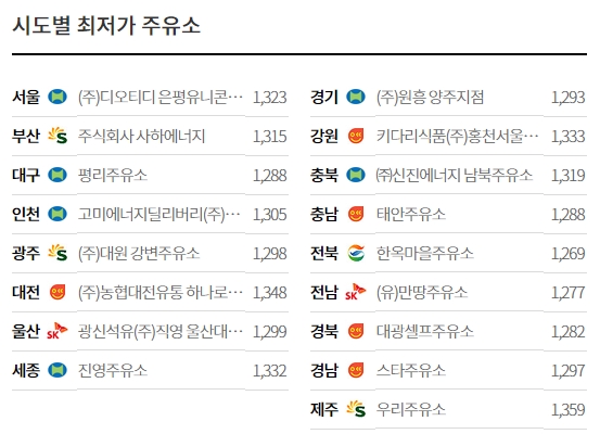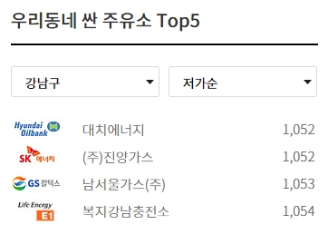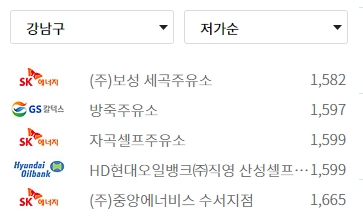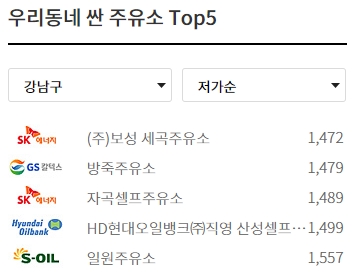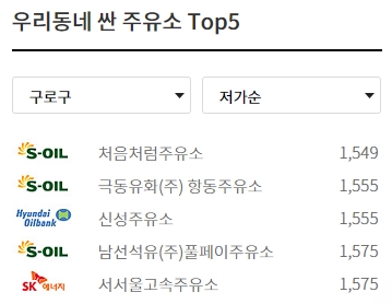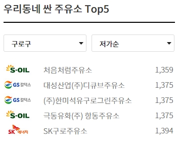 "서울 구로구, 강남구에서 가장 싼 주유소 5곳, 2023년"