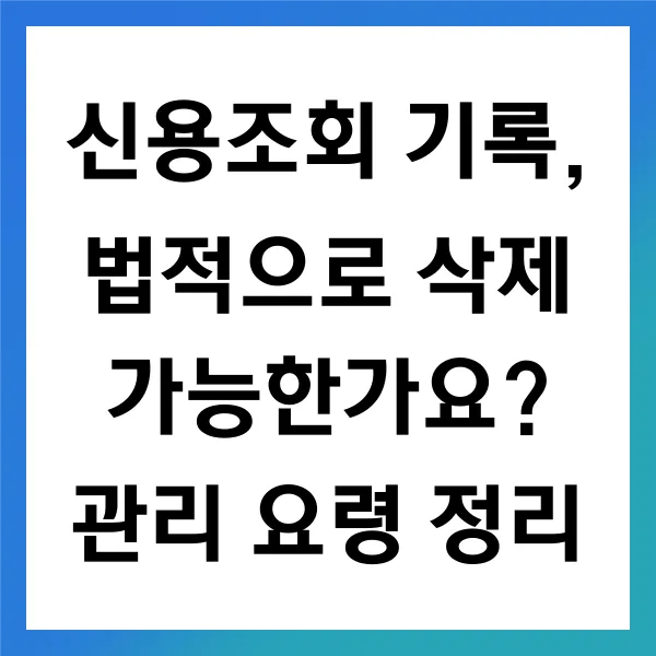 신용조회 기록 관리는 개인의 신용을 보호 하고 향후 금융 활동에 긍정적인 영향을 미칠 수 있는 중요한 요소 입니다. 법적으로 정해진 절차와 기준을 이해 하고 이를 활용하면 불필요한 신용조회 기록이 남지 않도록 할 수 있습니다. 또한, 주기적인 신용정보 확인 및 관리 습관을 통해 신용 상태를 점검 하는 것이 권장됩니다. 이렇게 함으로써 자신의 신용을 지속적으로 보호 하고, 금융 생활의 안정성을 높일 수 있습니다. 신용 관리의 중요성을 인식하고 이를 적극적으로 실천하는 것이 필요한 시점입니다.