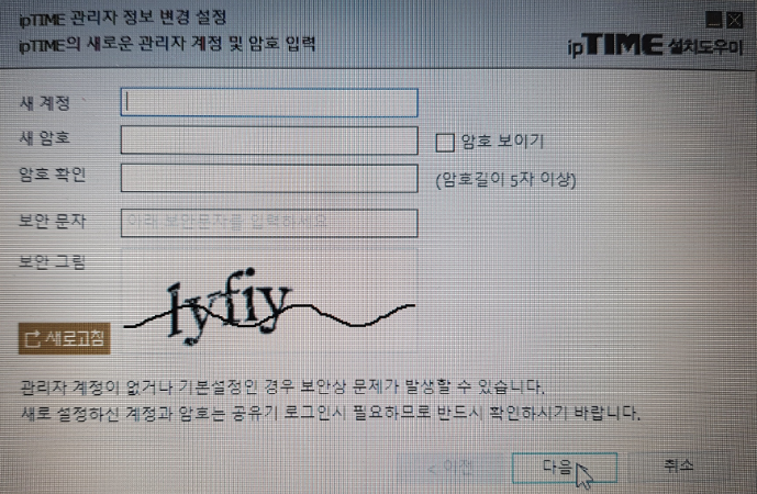 '보안 문자' 입력만 하시고 다음버튼 클릭!