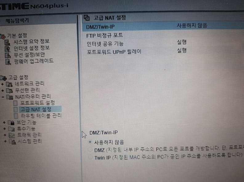 항목 아래로 보시면 NAT/라우터 관리