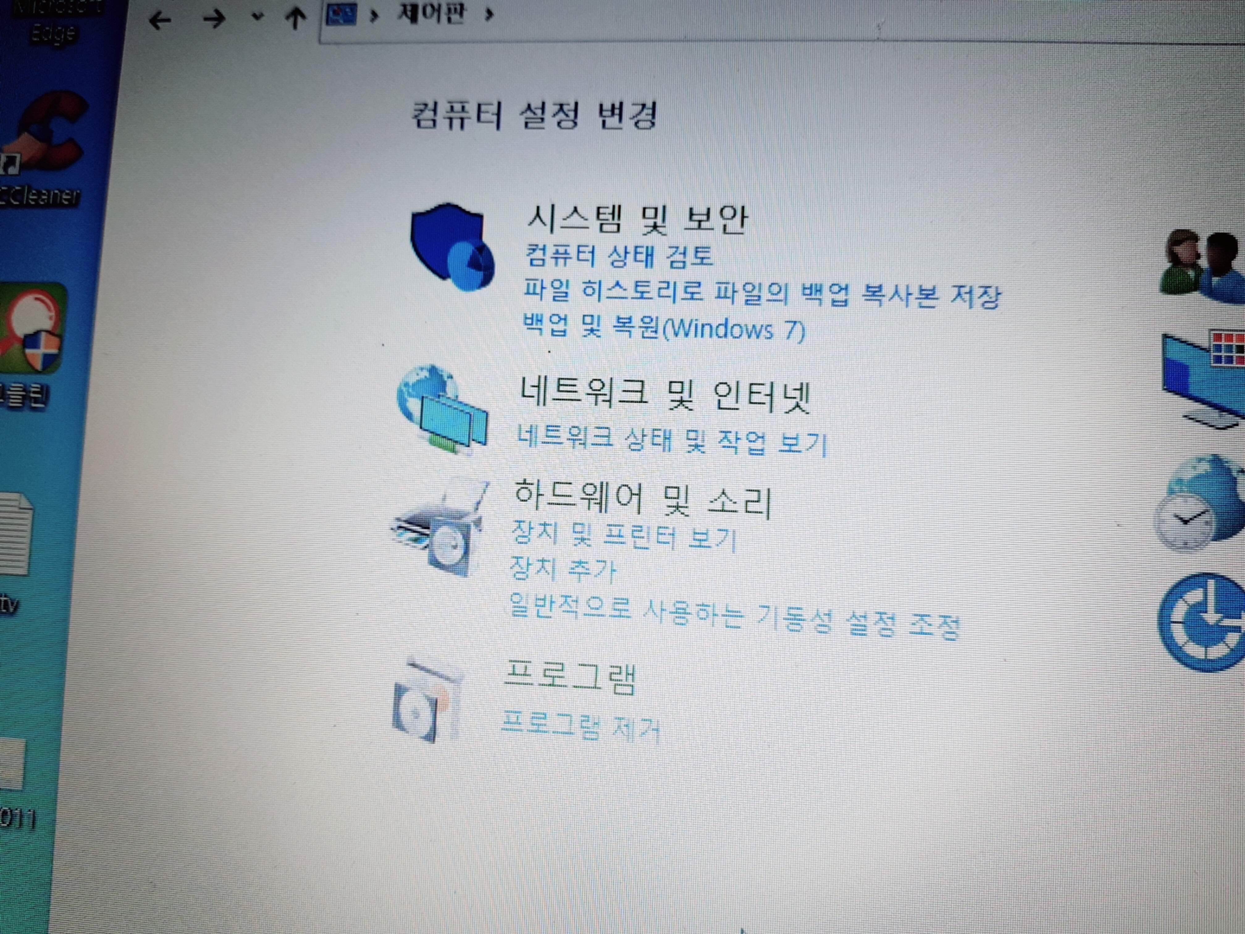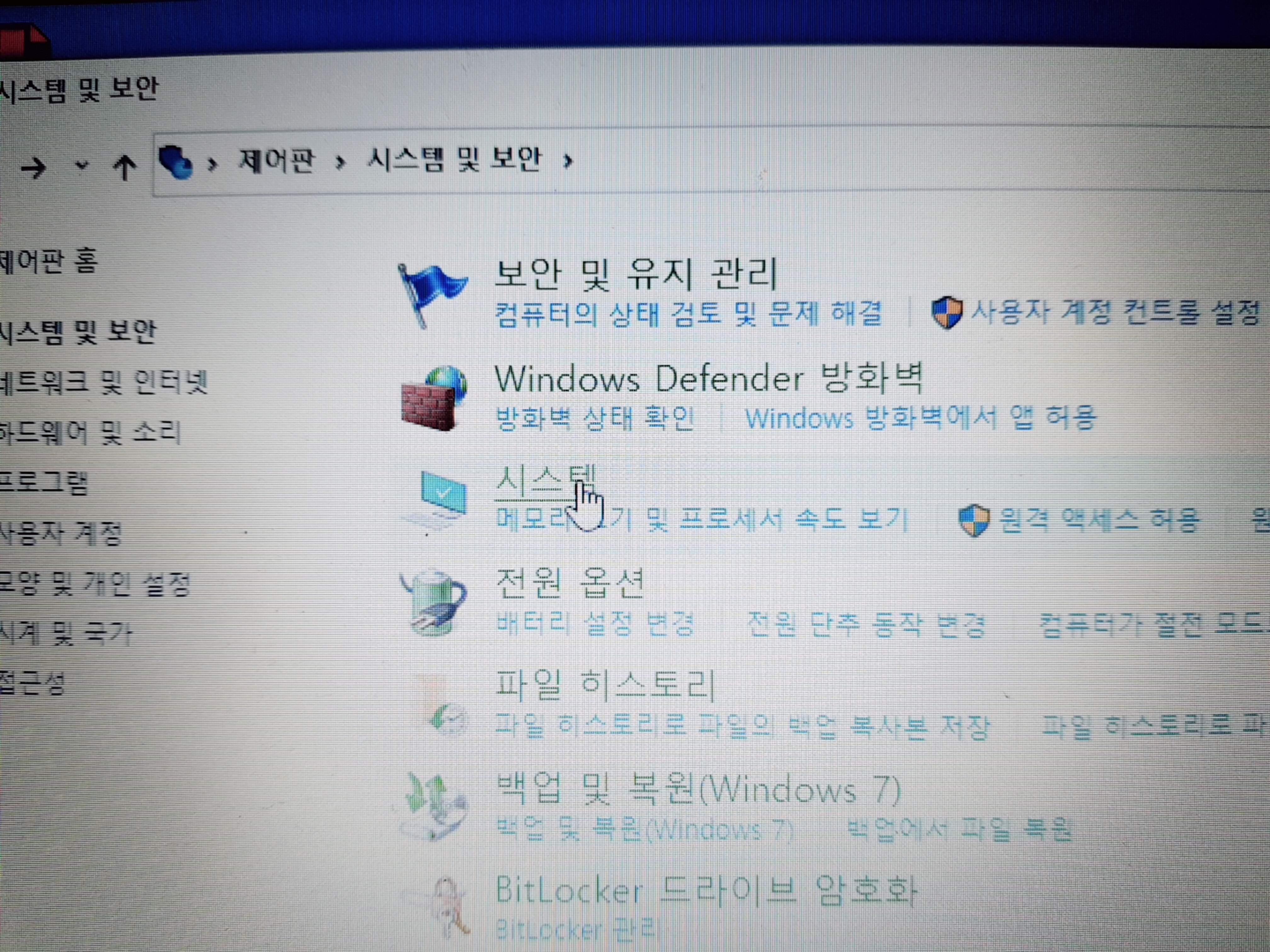 모니터 왼쪽 하단에 윈도의 아이콘이 보입니다. 한번 클릭하면 위로 메뉴가 나오는 데 그중에 '제어판' 선택합니다. (다르게 경로를 찾으셔도 됩니다.) 컴퓨터 설정 변경 창이 나오면 아래로 시스템 보안이 보입니다. 클릭! 다음으로 시스템 클릭!