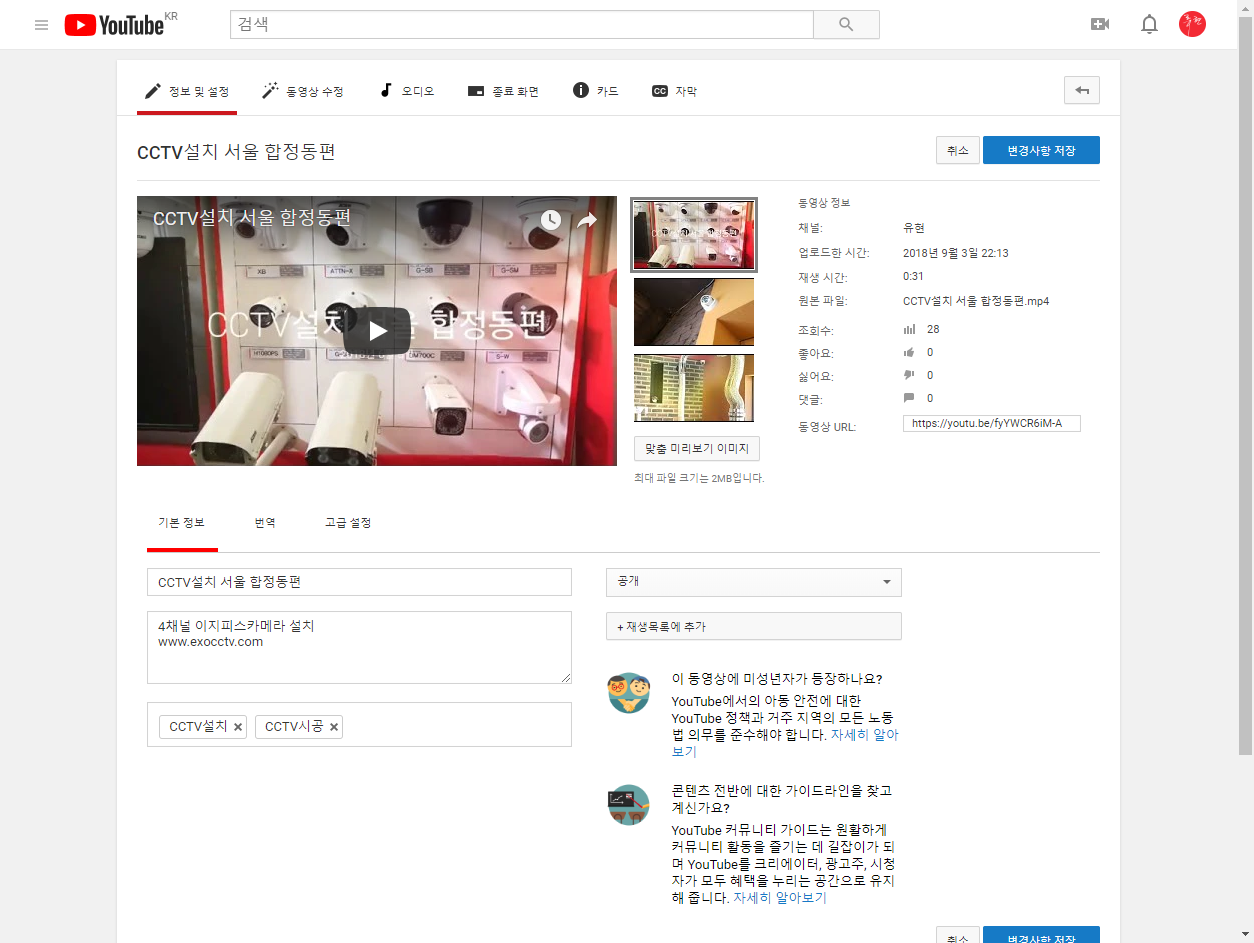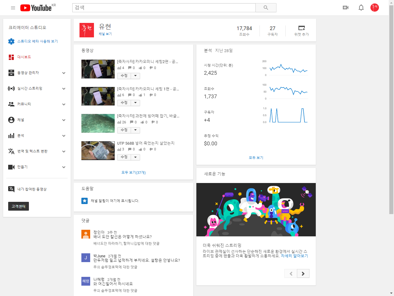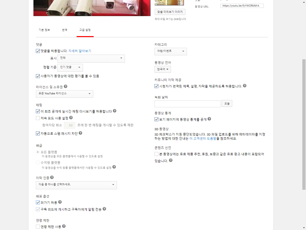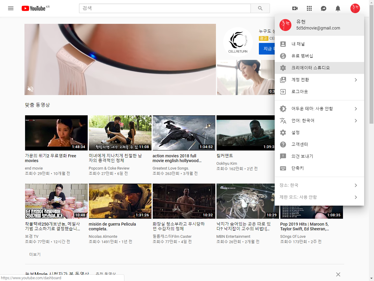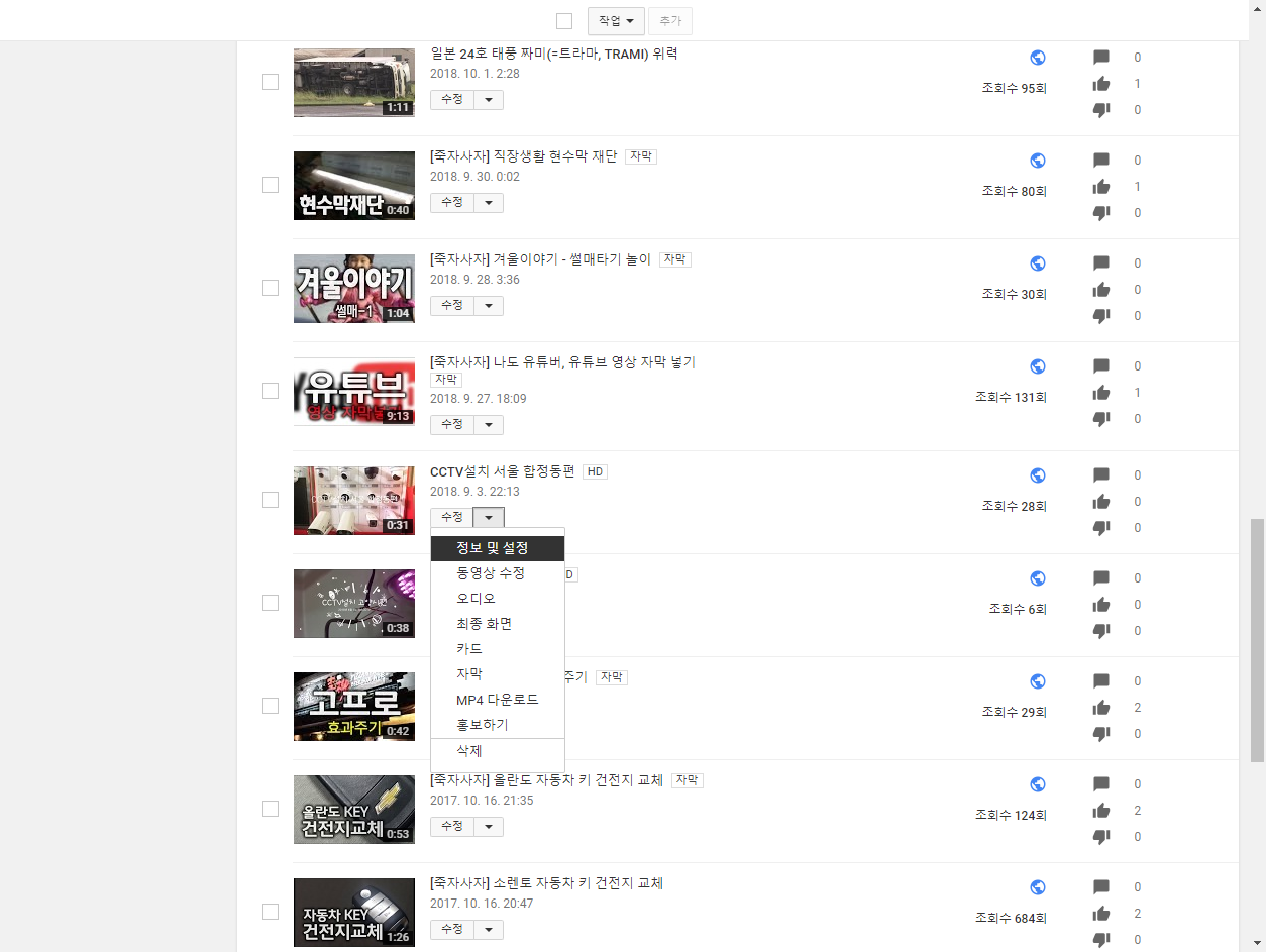 왼쪽 메뉴들 가운데 '동영상 관리자'