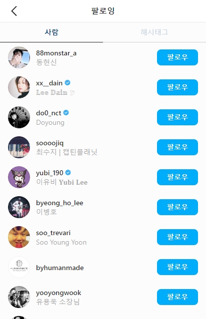 이다인 인스타그램에 들어오면 재미있는 게 있다. 장난스러우면서도 섬세한 센스라고 할까? 인스타그램에 보이는 '팔로우1' 참고로, (자신이 팔로우하면 팔로잉, 자신을 팔로우 한 사람을 팔로워라고 한다.)