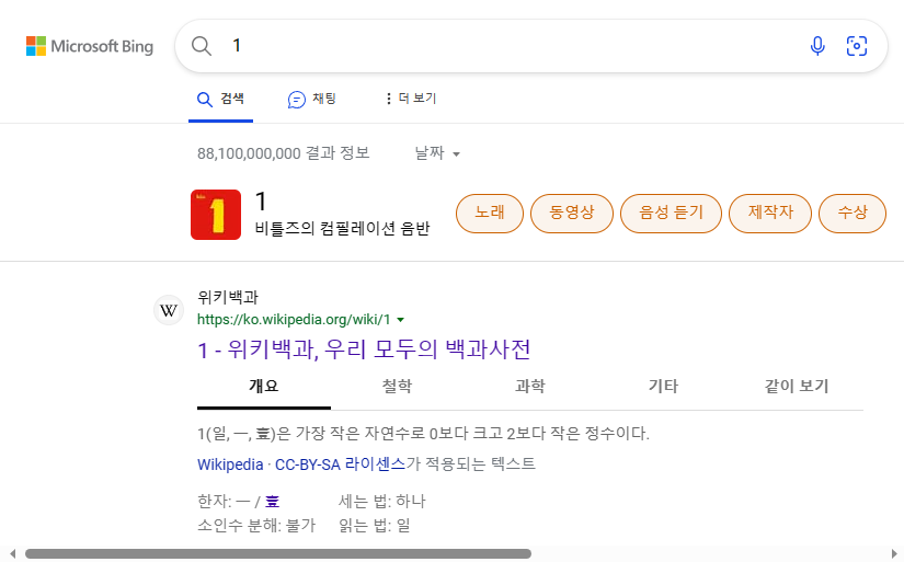 👉🏻숫자1 검색결과: 위키백과가 나오네요!
