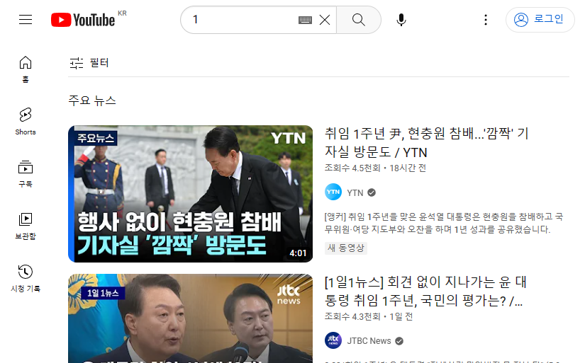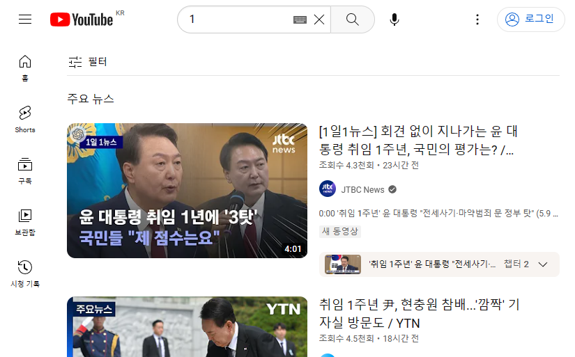 👉🏻숫자1 검색결과: 주요뉴스가 나옵니다. 한번더 숫자1 검색해 보니 '주요뉴스' 동일하나 내용이 바뀌어 나옵니다.