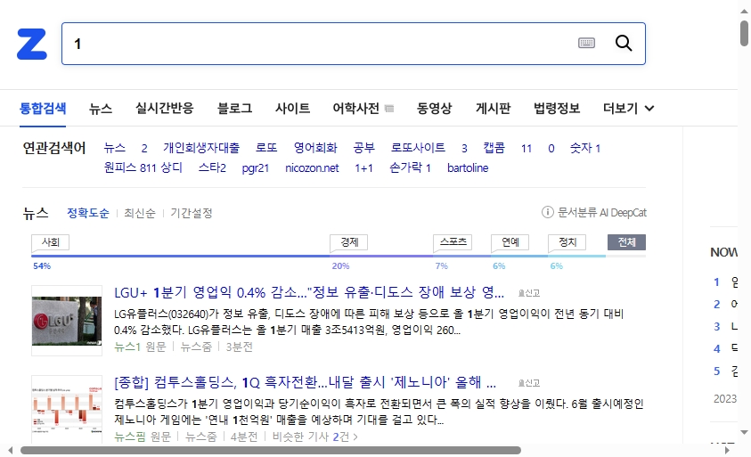 👉🏻숫자1 검색결과: 뉴스가 나오는 것을 볼 수 있습니다.