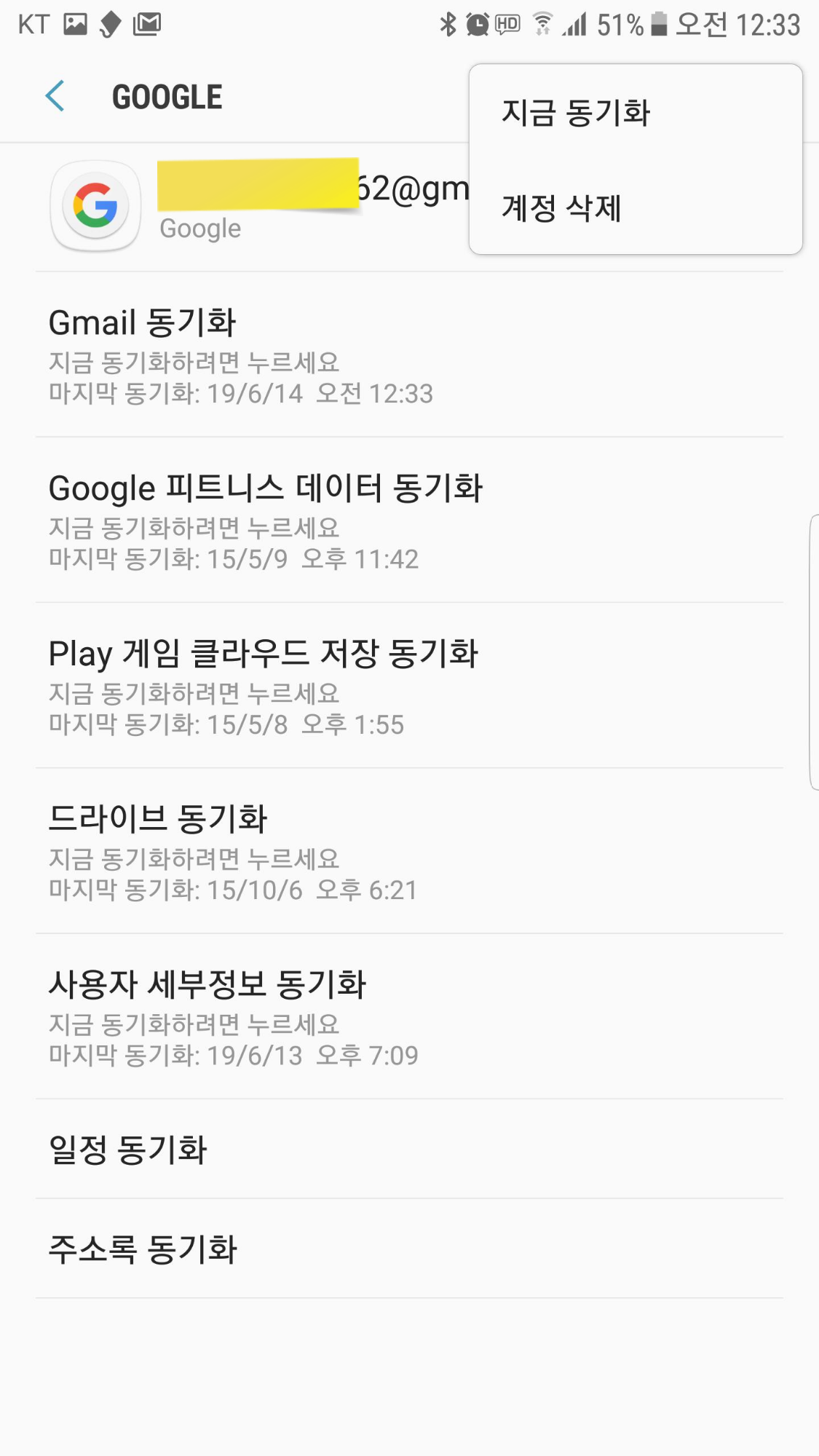 지금동기화, 계정 삭제 이렇게 나타납니다.