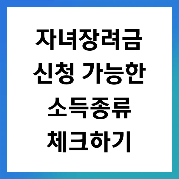 소득 종류에 대한 이해는 자녀장려금 신청 시 꼭 필요합니다. 각종 소득의 정확한 집계와 신고를 통해 경제적 지원을 받을 수 있는 기회를 놓치지 마세요.