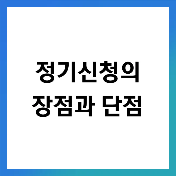 마지막으로, 정기신청은 개인의 상황에 따라 불이익을 가져올 수 있는 요소 도 있습니다. 이를테면, 신청 기간에 맞춰 이사나 직장 변동이 있는 경우, 신청 마감일을 놓치는 등의 문제로 인해 지원 자격을 상실할 수 있는 위험이 있습니다.