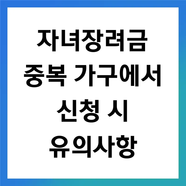 자녀장려금 신청에 있어 중복 가구의 경우 , 주의할 점이 많습니다. 신청 자격을 철저히 확인하는 것이 첫걸음입니다. 중복 가구의 정의를 이해한 후, 올바른 방법으로 신청서를 제출해야 하며 , 신청 후에는 반드시 결과를 확인하여야 합니다. 이 절차는 각 가구의 권리를 보호하는 중요한 단계입니다. 정확한 정보를 바탕으로 신중하게 진행한다면 , 자녀장려금 혜택을 누릴 수 있는 기회를 극대화할 수 있습니다. 여러분의 소중한 혜택을 놓치지 않기를 바랍니다.