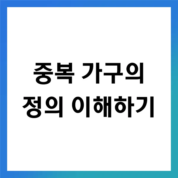 중복 가구를 정확하게 이해하기 위해서는 가구의 정의에 대한 명확한 인식 이 요구됩니다. 가구란, 경제적으로 함께 살아가고 일상적인 생활을 같이 하는 사람들의 집합체 를 의미합니다. 이 경우에 중요한 요소는 소득 및 세대주 여부 입니다. 따라서, 한 가구 내에서 자녀가 동일한 세대주에게 속하지 않는다면, 중복 가구로 판단될 수 있습니다. 이와 같은 이해가 없으면 신청 과정에서 여러 문제가 발생할 수 있습니다.