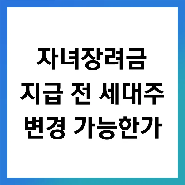 자녀장려금 지급 전 세대주 변경이 가능할까요? 이 질문은 많은 가정에서 중요한 문제 로 떠오르고 있습니다. 특히, 세대주 변경의 필요성을 느끼는 경우가 많습니다. 자녀장려금 지급 조건을 충족하기 위해서는 세대주 변경이 어떤 영향을 미칠 수 있는지 이해하는 것 이 중요합니다. 이와 관련된 절차와 주의사항 을 알아보면, 보다 효과적으로 자녀장려금을 수령 할 수 있습니다. 그러므로, 세대주 변경과 자녀장려금의 관계 에 대해 깊이 있는 정보를 제공하겠습니다.