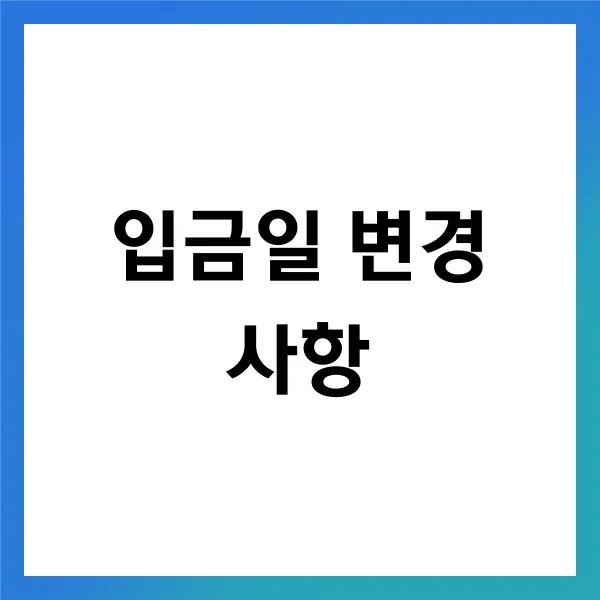 또한 입금일 변경에 대한 문의도 잦습니다. 만약 신청 시기나 서류 제출에 문제가 발생하면, 입금일이 연기될 수 있습니다 . 따라서, 서류를 제출할 때는 정확한 정보를 기반으로 작성하는 것이 중요 합니다. 예를 들어, 소득 증명서나 세금 관련 서류가 누락될 경우, 심사가 지연될 수 있습니다. 이런 경우에는 공식 홈페이지나 관련 기관에 문의하셔서 추가적인 정보를 확인하시기를 권장합니다.