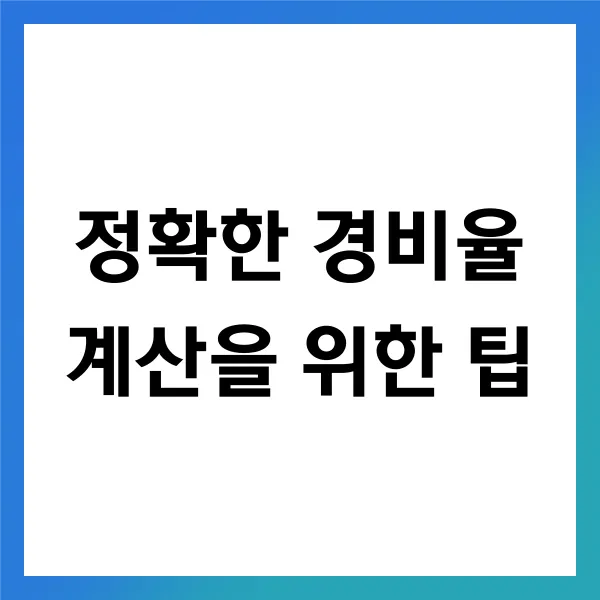 둘째로, 비용 분류의 정확성이 중요 합니다. 비용은 직접비와 간접비로 구분되며, 적절한 분류는 경비율 산정의 기초입니다. 예를 들어, 제품 생산에 직접적으로 소요된 원자재 비용은 직접비로 분류되어야 하며, 회계, 관리비와 같은 부분은 간접비로 처리되어야 합니다. 이를 통해 비용 성격의 명확성 을 기할 수 있습니다.