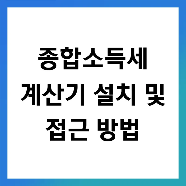 종합소득세 계산기를 사용하기 위해서는 먼저 적절한 설치와 접근 방법을 이해하는 것이 중요합니다. 이 부분은 정확한 계산을 위해 필수적인 단계 이며, 소득세 신고의 성공 여부에 중요한 영향을 미칩니다.