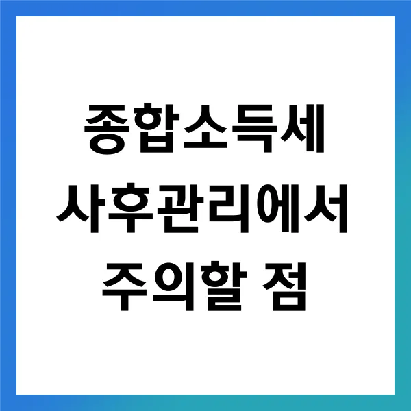 종합소득세 사후관리 는 단순히 세금 신고 후 끝내는 것이 아닙니다. 사후관리를 철저히 하여 불필요한 세무 리스크를 예방 할 수 있습니다. 특히 세무조사를 대비하기 위한 철저한 준비 가 필요합니다. 소득세 관련 법률을 충분히 이해하고 있는 것이 중요합니다. 이를 통해 세무조사에 대비할 수 있는 전략을 세울 수 있습니다. 정확한 정보와 꼼꼼한 점검은 성공적인 세무관리에 필수적 입니다. 세금 신고 후에도 지속적인 모니터링과 점검 을 통해 장기적인 안정과 신뢰성을 유지하시기 바랍니다.