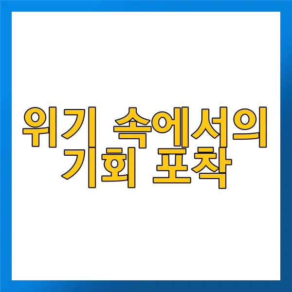 이를 위해서는 본인의 투자 원칙과 기준을 세우는 것이 필요합니다. 예를 들어, 사전에 설정해둔 손절매 비율을 엄격히 지키는 것이 좋습니다. 그러면 감정적인 결정에서 벗어나 객관적인 판단을 할 수 있게 됩니다. 결국, 위기 속에서 기회를 포착하는 것은 단순히 저가 매수의 기회를 찾는 것이 아니라, 시장의 흐름을 이해하고, 체계적으로 접근하며, 감정을 관리하는 종합적인 투자 전략을 개발하는 과정입니다.