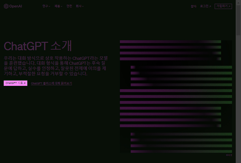 설명 아래 그림 보시면 'ChatGPT 시도' 버튼 선택합니다.