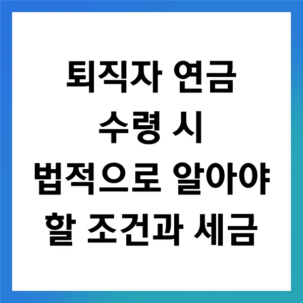 이와 같이 복잡한 조건과 변수를 이해하고 올바르게 적용하는 것이 퇴직 연금 수령의 첫걸음입니다. 연금 수령 조건에 대해 잘못 이해하면 예상하지 못한 재정적 문제가 발생할 수 있으니 주의해야 합니다. 따라서 적절한 시점에 정확한 정보를 확보하고 계획을 세우는 것이 중요합니다. 이러한 기준들을 명확히 이해하고 관리한다면, 은퇴 후 안정된 경제적 생활 을 가능하게 할 것입니다.