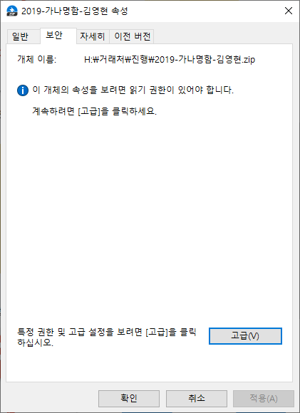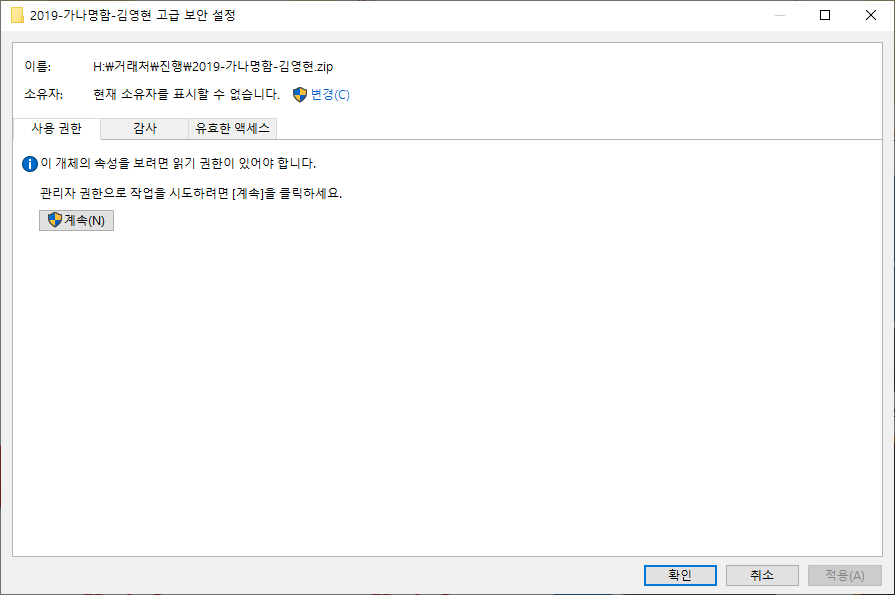 외장하드의 폴더를 열라고 하는데, '현재 이 폴더에 액세스할 수 있는 권한이 없습니다.' 이벤트팝업창이 나옵니다. 윈도우 재설치 후 나타나는 현상으로 어제까지 작업하던 파일, 그리고 재설치를 위해 급하게..