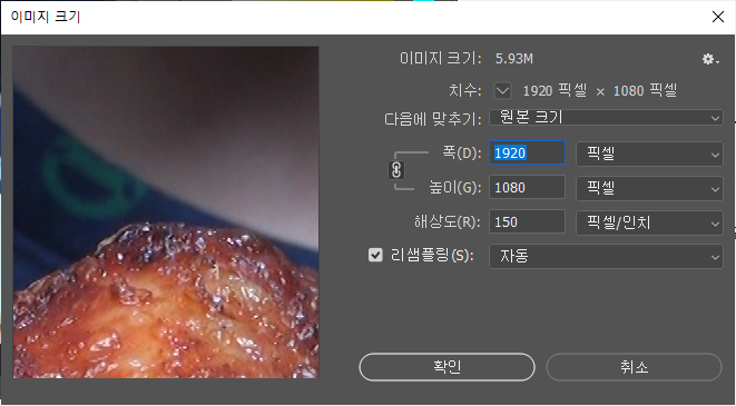 압축화일을 열어 포토샵에서 실행합니다. '해상도'를 150으로 바꾸시면 됩니다. 해상도는 포토샵 맨 상단에 파일, 편집, 이미지....이렇게 나오는 부분에 '이미지'를 선택합니다. 아래로 열려진 메뉴들 가운데 '이미지크기' 선택하시면 됩니다. 포토샵 영문버젼, 한글버젼 비슷한 위치에 나오니 잘 찾으시고요.