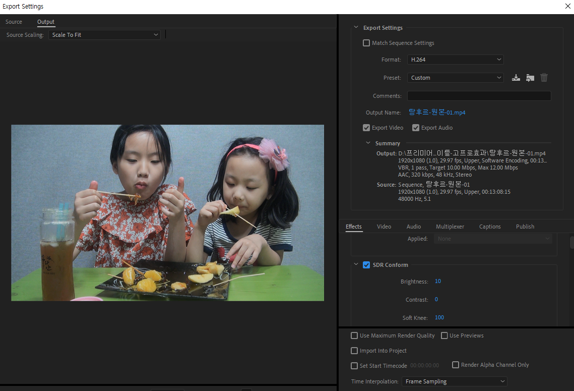 프리미어에서 영상출판을 위해 단축키