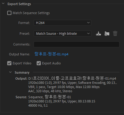Match Source-high bitrate을 선택합니다.