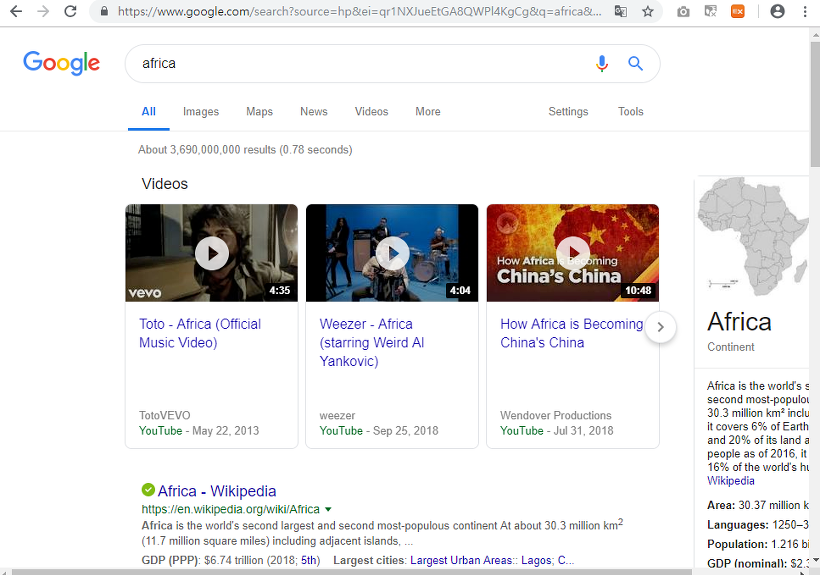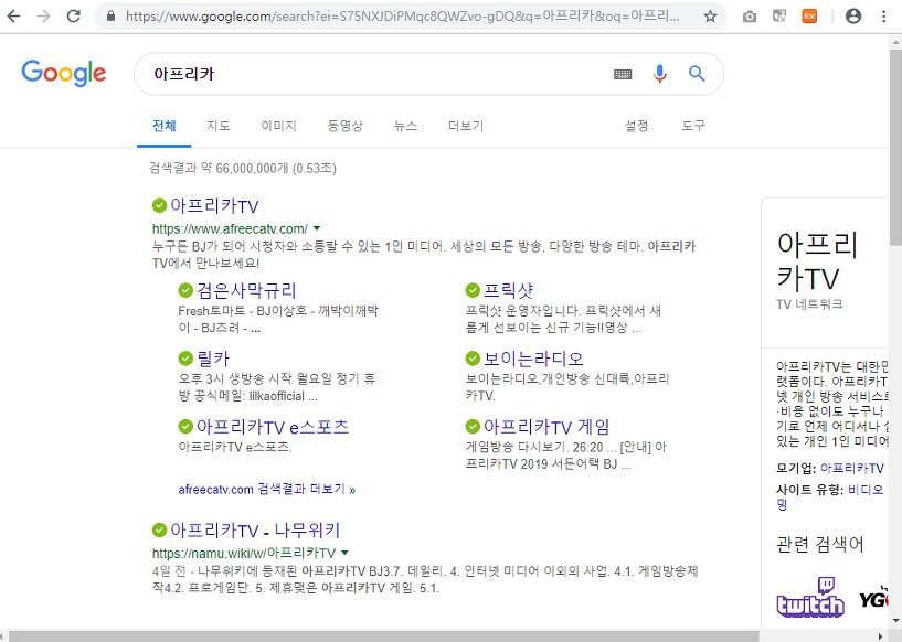 'africa'로 검색해 보니 영문으로 나옵니다.